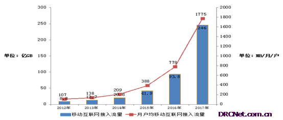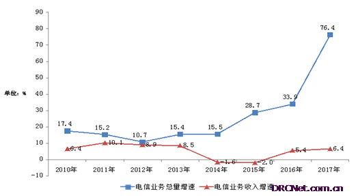 ①2010-2015年电信业务总量按照2010年不变单价计算,2016-2017年按照2015年不变单价计算。 ②1GB=1024MB |