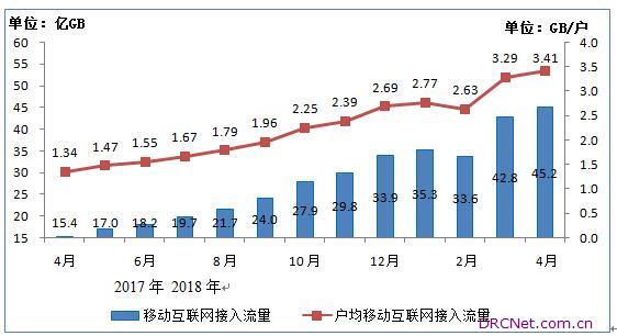 4月份户均移动互联网接入流量达3.41GB。1-4月移动互联网累计流量达157亿GB,同比增长192.2%;其中通过手机上网的流量达到154亿GB,同比增长209%,占移动互联网总流量的98%。4月当月户均移动互联网接入流量达到3.41GB,同比增长154%。固定互联网使用量保持稳步快速增长,1-4月固定互联网宽带接入流量同比增长52.6%。 图9 移动互联网接入月流量和户均流量比较