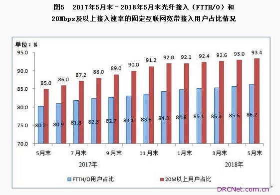100Mbps及以上固定宽带接入用户占比突破50%,总数达1.88亿户。5月末,三家基础电信企业的固定互联网宽带接入用户总数达3.71亿户,1-5月净增2285万户。其中,光纤接入(FTTH/O)用户总数达到3.2亿户,占固定互联网宽带接入用户总数的86.2%。按速率划分,20Mbps及以上接入速率的固定互联网宽带接入用户总数达3.47亿户,占比为93.4%;50Mbps及以上和100Mbps及以上接入速率的固定互联网宽带接入用户总数分别达2.94亿户和1.88亿户,占总用户数的79%和50.5%。