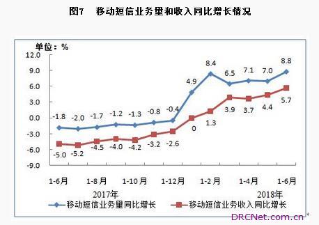 移动短信业务量和收入持续增长。服务登录和身份认证等服务的普及,使企业短信业务量今年以来保持大幅提升的态势,上半年,全国移动短信业务量同比增长8.8%;移动短信业务收入完成195亿元,同比增长5.7%;移动彩信业务量同比下降11.9%。