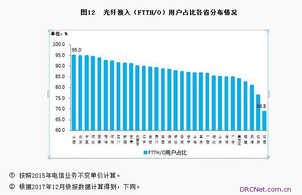 五、地区发展情况 西部光纤接入(FTTH/O)渗透率保持领先。截至6月末,东、中、西部地区光纤接入(FTTH/O)用户分别达到15820万户、8731万户和8299万户,占本地区固定互联网宽带接入用户总数的比重分别为85.3%、87.1%、89.6%,西部地区领先。各省光纤接入(FTTH/O)用户占比差异呈缩小态势,山西、北京、宁夏、河北、西藏、青海、河南、四川、新疆、甘肃和内蒙古等11个省市占比均超过90%。 |