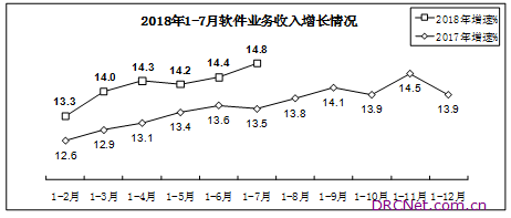 1-7月,我国软件和信息技术服务业整体保持稳中向好,业务收入增速加快提升,利润总额保持增长,从业人数和工资总额稳步增加。软件产品收入稳定,信息技术服务收入较快增长。中部地区软件业增速较快,东部地区软件业保持集聚和领先发展态势。 一、总体运行情况 软件业务收入加快增长。1-7月,我国软件和信息技术服务业完成软件业务收入34457亿元,同比增长14.8%,增速同比提高1.3个百分点。其中7月软件业务收入同比增长17.4%,增速比6月提高2.5个百分点。
