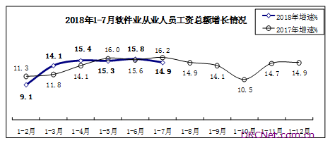 从业人数稳步增加,工资水平保持增长。1-7月,我国软件和信息技术服务业从业平均人数615万人,同比增长5.7%,增速同比提高1.7个百分点;从业人员工资总额增长14.9%,行业人均工资增长8.7%。