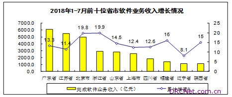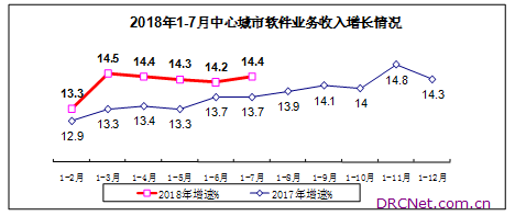 中心城市软件业收入稳步增长。1-7月,全国15个副省级中心城市实现软件业务收入19049亿元,同比增长14.4%,增速低于全国平均水平0.4个百分点。其中,杭州、武汉软件业务收入增速超过20%。1-7月,中心城市软件业实现利润总额增长11.5%。