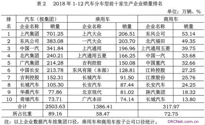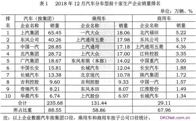 1-12月,汽车销量排名前十位的企业依次是上汽、东风、一汽、北汽、广汽、长安、吉利、长城、华晨和奇瑞。与上年同期相比,长安销量下降较快,东风、北汽和长城降幅略低,其他六家企业呈不同程度增长,其中吉利增速更快。1-12月,上述十家企业共销售2503.63万辆,占汽车销售总量的89.16%。
