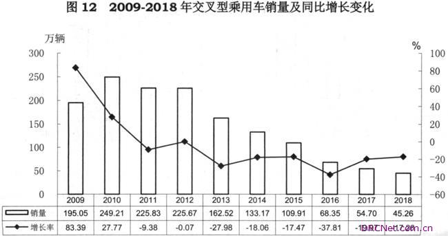 从近十余年交叉型乘用车销售情况来看,2009-2010年受政策因素刺激,呈快速增长,2011年之后市场逐渐萎缩,尽管近两年销量同比降幅有所收窄,但总体低迷态势没有得到根本缓解。