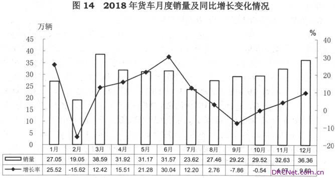 2018年,货车(含货车非完整车辆、半挂牵引车)产销分别达到379.07万辆和388.56万辆,同比增长2.93%和6.94%,增速比上年减缓13.94个百分点和9.97个百分点。