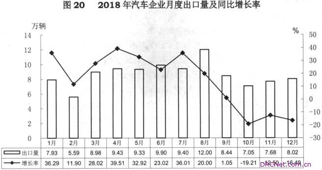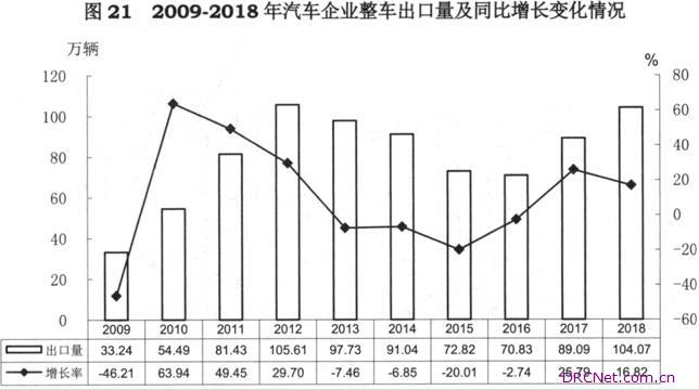 据对行业内整车企业报送的出口数据统计,2018年,汽车企业共出口104.07万辆,自2012之后出口再次超过百万辆,同比增长16.82%,增速比上年有所减缓。