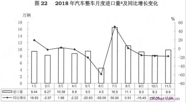 此外,据海关总署提供的2018年前11月汽车整车进口情况来看,进口量同比呈小幅下降,市场表现明显不如上年。2018年,汽车整车共进口105.7万辆,同比下降6.8%;进口金额802.4亿美元,同比增长7.2%。