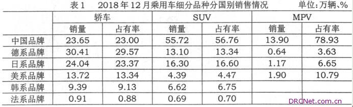 1-12月,中国品牌乘用车共销售997.99万辆,同比下降7.99%,占乘用车销售总量的42.09%,占有率比上年同期下降1.79个百分点。德系、日系、美系、韩系和法系乘用车分别销售508.05万辆、444.63万辆、247.79万辆、118.05万辆和30.70万辆,分别占乘用车销售总量的21.43%、18.75%、10.45%、4.98%和1.29%。与上年相比,德、日和韩系品牌销量呈小幅增长,美系和法系明显下降。
